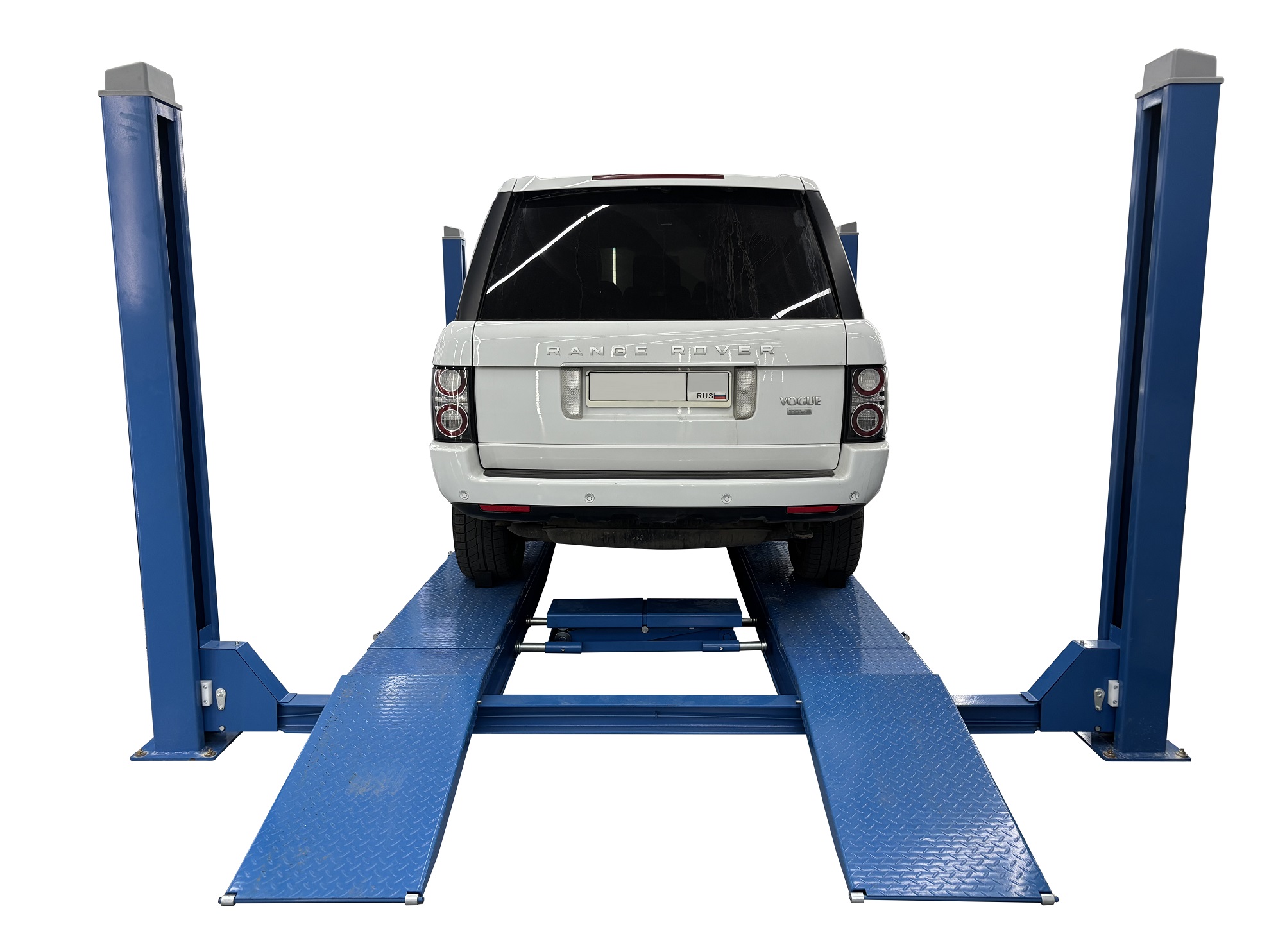 Подъемник электрогидравлический четырехстоечный F4D-4 грузоподъемностью 4 тонны, предназначен для системы сход-развала схождения колес, оснащен местами для поворотных кругов и задними сдвижными платформами, оборудован гидравлической двухточечной траверсой грузоподъемностью 2 тонны.