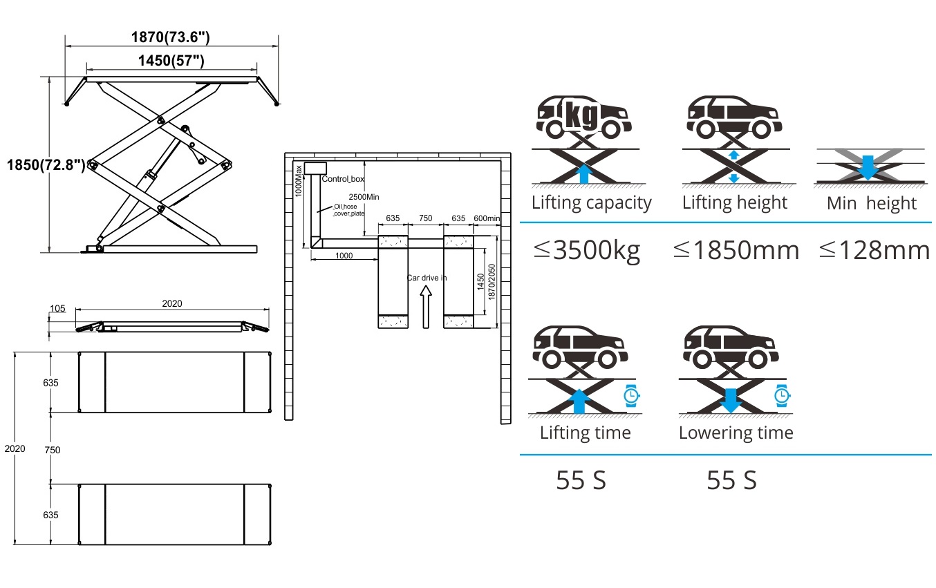 • Высота подхвата 110 мм – может поднимать авто с «низкой» посадкой.