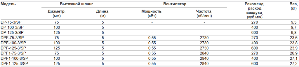 DPF/SP Вытяжное устройство с трехфазным вентилятором «FR-1800/SP», питание 3ф/380В (на фото в начале страницы).